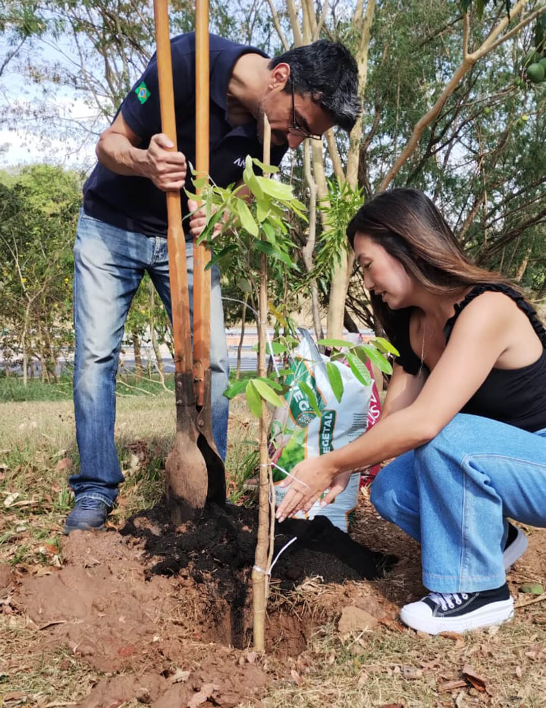 Realizamos no dia 29 de setembro a ação “Raízes do Futuro: Cultivando Sustentabilidade”, uma ação de sustentabilidade através do plantio de árvores nativas e também do reaproveitamento de embalagens plásticas.